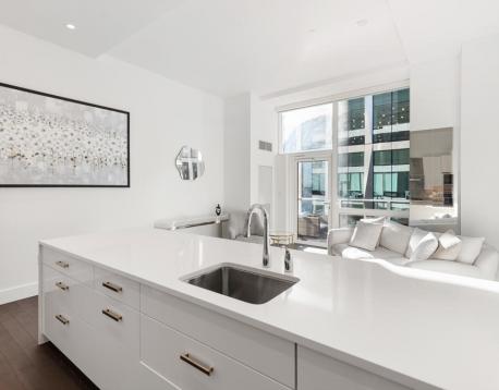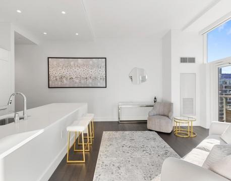 Exquisite One-Bedroom Penthouse Residence at 50 Liberty Drive located in one of Bostons Premier waterfront residences in the highly desirable Seaport neighborhood. This residence features Open-concept layout with dramatic 10.5-foot hight ceilings,floor-to-ceiling windows that offers partial water and stunning city views.The Large waterfall island centers around the gorgeous white kitchen quartz countertops,custom high gloss white laquer cabinets,pantry,Sub Zero refrigerator,Wolf gas stove top & wall oven&Miele dishwasher.The spacious primary en-suite features floor-to ceiling windows with a stunning luxurias marble bathroom, double vanity with large glass enclosed shower.Half bath,washer/dryer,custom shades,1 car garage parking.Private balcony over looking the Seaport District with partial water views .Unit comes furnished.Amenties include residence lounge,waterfront terrace&boardroom,fitness center. Located to Seaport District's finest restaurants cafes, shops,Logan Airport.