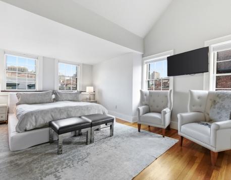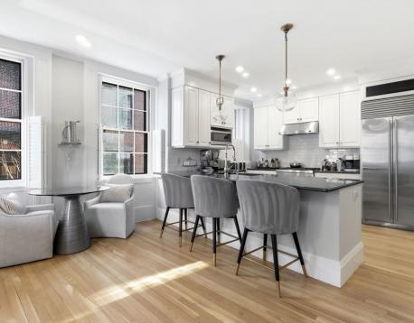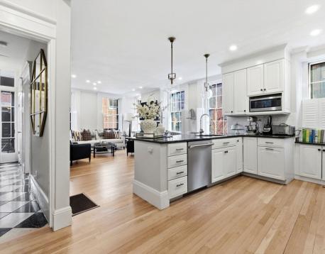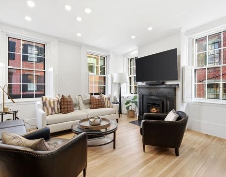 Available 6/1. Located on the flat of Beacon Hill, just steps from Charles St. and the Public Garden, this elegant single-family corner home offers a perfect floor plan spanning five sun-filled levels with a wall of south-facing windows on every floor. Enter through a welcoming foyer or side mudroom into a well-appointed kitchen with a Sub-Zero refrigerator, Thermador gas range, vented hood, abundant cabinetry, and a breakfast bar open to a sitting area with a gas fireplace. A half-bath completes this level. Entertain on the second floor, where high ceilings soar over a dramatic living/dining area with a second gas fireplace, window seat, custom wet bar, and double French doors leading to a private terrace. The third floor includes two bedrooms, an office/small bedroom, and a full bath. A gorgeous primary suite on the top floor features sweeping views, a walk-in closet, a spa-like bath, and in-unit laundry. The lower level offers a den or au pair space, 3/4 bath, and excellent storage