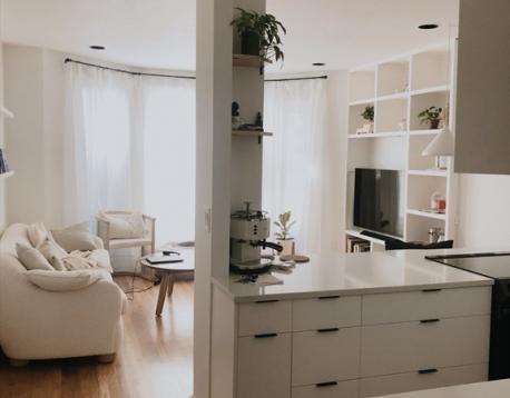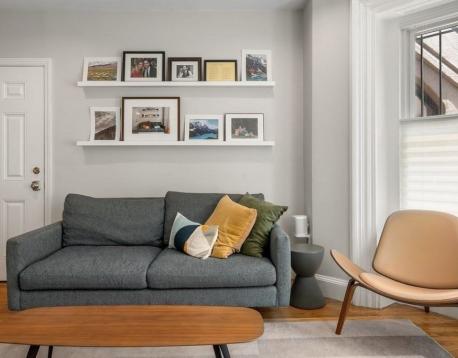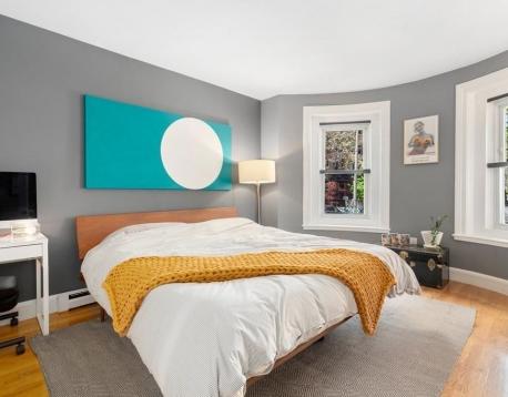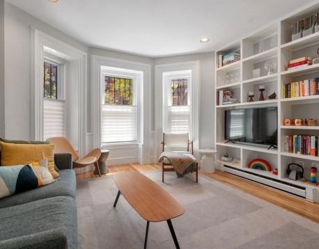 This street level 2-bedroom unit offers bright, convenient city living with semi-private entry and no stairs to navigate. Bow windows at the front and back bring natural light throughout the living space, highlighting custom built-ins and original architectural details. The newly renovated modern kitchen featuring stainless-steel appliances, sleek cabinetry, and quartz countertops with ample prep space, overlooks and opens directly into the living area, creating an open concept feel. Additional features include mini-split heating and cooling, in-unit washer/dryer, and an updated bathroom with radiant-heat floors. Both bedrooms offer hardwood floors and custom closet space, equipped with premium, fully customizable storage systems. A private deck sits just off the second bedroom. Note: Photos are from a previous listing and do not reflect the current owners furnishings.