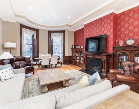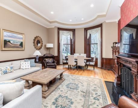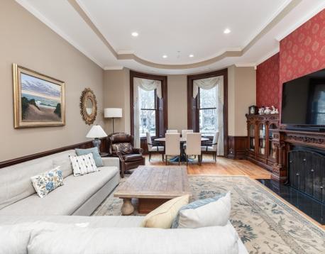 Set on the sunny side of Commonwealth Avenue, this rarely available 2,660 square foot duplex offers exceptional space within one of Back Bays most sought-after buildings. The main living level features a spacious, sun-filled living room with high ceilings, hardwood floors, and beautiful period detail, along with a well-appointed kitchen, a separate bonus living room or den, and a dedicated office space for flexible day-to-day living. The upper level is anchored by a generous primary suite with a Juliette balcony and en-suite bath, while the second bedroom is located on the lower level, offering privacy and separation. Additional features include a private patio, two garage parking spaces, and additional storage. Ideally located just moments from the Public Garden, Newbury Streets premier shopping and dining, and the Green Line, this is a rare opportunity to live on one of Back Bays most desirable stretches of Commonwealth Ave. Can be furnished or unfurnished.