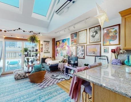 Available 9/1/2026. Penthouse Duplex 3 bedroom apartment featuring soaring ceilings with multiple large skylights, large modern kitchen with breakfast bar, beautiful hardwood floors, 2 full bathrooms, in-unit washer/dryer, Central Heat and A/C, and an amazing large private deck with views of the Boston skyline. Located on Hemenway Street in the East Fenway, this unit is close to the green line, number one bus, Berklee College, New England Conservatory, Northeastern University, and many other colleges, and the Back Bay Fens.