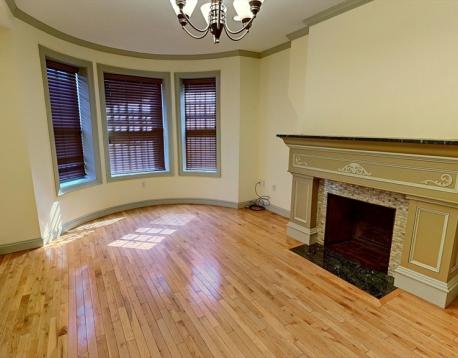 Available 9/1/2026! Absolutely HUGE (1,700 ++ sq ft!), beautifully renovated, 4 bedroom duplex condominium with an enormous Eat In kitchen with granite countertops, stainless steel appliances, a 4 person breakfast bar, plus an open dining room. All (4) bedrooms will fit a king size bed. There are (3) beautiful bathrooms, hardwood floors throughout the apartment, 2 beautiful ornamental fireplaces, high ceilings, wooden baseboard & crown molding everywhere, central heat and a/c, washer/dryer in unit and an outside deck.