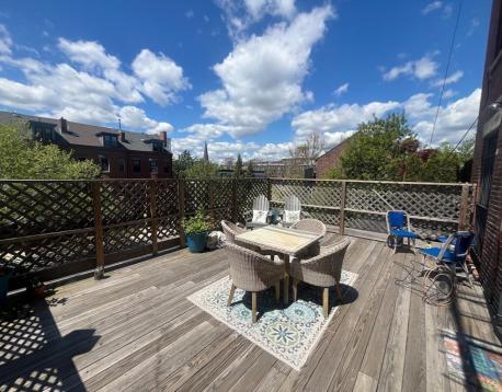 South End... Chester Park... Entire 2nd Floor with PRIVATE deck, Two Bedrooms in a pristine brownstone located steps to Symphony Hall, South End restaurants, Boston Medical Center and public transportation. Large living room with soaring ceilings, wall of windows, great sun light. Fully-applianced kitchen. Spacious bedrooms, large closets, over 1000+ sq. feet of living space on one floor. Laundry in building. Private Deck with spectacular skyline views. Cats allowed.. Available 1/1/2026 for $3700/month. Easy commute to BUMC and Longwood Medical, Financial District, Cambridge, and Back Bay. steps from the Orange Line.