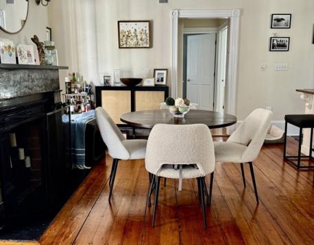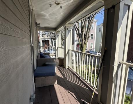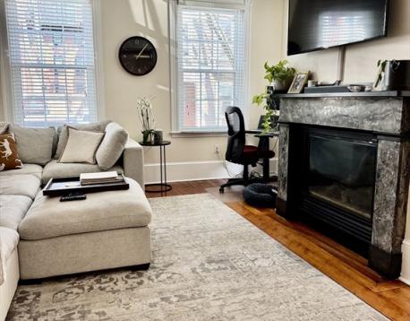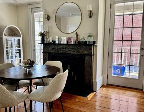 Some streets just have it, gas lights,tree lined Chestnut Street is that street. Step in side #54 the open living, dining, and kitchen flow effortlessly, with pocket doors for when the evening calls for something more intimate. Two marble fireplaces, one gas, one wood-burning add warmth and character that no renovation can manufacture. Two large bedrooms, two tiled baths, in unit laundry, central air, private storage, and a porch for summer grilling & chilling. Step outside and the neighborhood unfolds: Bunker Hill Monument a block away, the Navy Yard three blocks out, and cafs, pubs and dry cleaner practically at your door. This is Charlestown living without compromise. With OFF STREET Parking and a private roofdeck with sweeping skyline views, makes 54 Chestnut not only a home but a lifestyle.