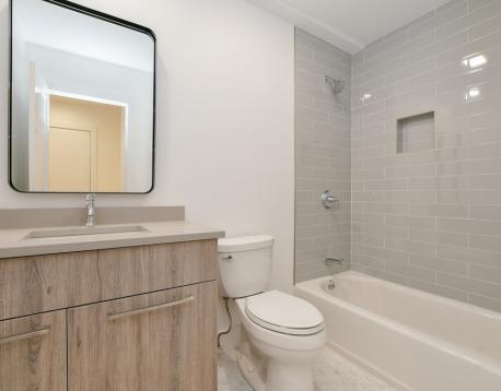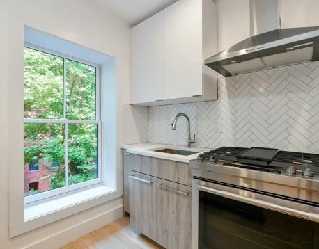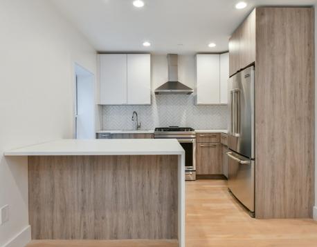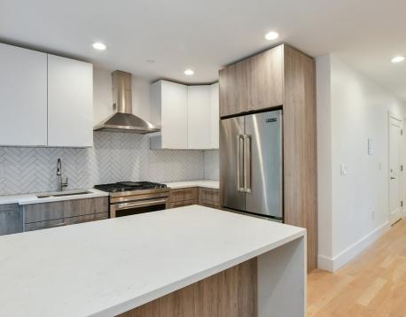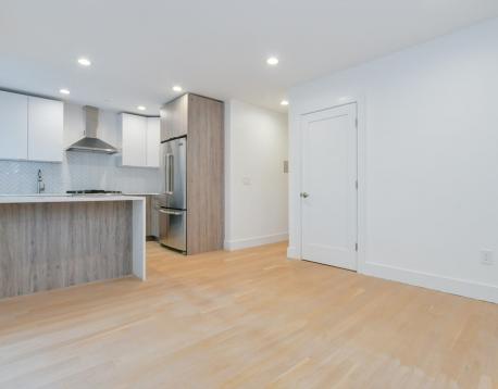 Introducing this stunning, meticulously renovated two-bedroom condo, situated on the fourth floor of a beautifully redeveloped brownstone completed in 2019. This exquisite floor-through residence features a state-of-the-art designer kitchen with pristine white quartz waterfall countertops and premium Jenn-Air Series Stainless Steel Appliances, enhanced by a decorative white backsplash. The home is adorned with stunning hardwood floors throughout, and it offers modern comforts like Central A/C, an in-unit washer and dryer combo and a completely renovated bathroom. Both generously-sized bedrooms are designed to fit queen-sized beds with ease. Positioned on a delightful one-way tree-lined street, this home offers convenient access to public transportation, major highways, and the vibrant cafes, restaurants, and boutiques that define the neighborhood. This exceptional home is now available for immediate occupancy, inviting you to elevated living experience in the South End.