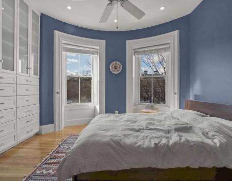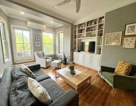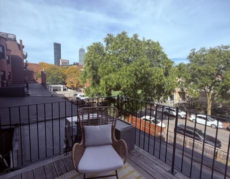Gorgeous renovated 2 bedroom floor through overlooking Chester Park with a private deck and Back Bay views. Unit is 1 level above parlor with tons of natural light, beautiful hardwood floors and great ceiling height. The renovated kitchen with granite countertops and a breakfast bar opens to the living and dining rooms with a hidden office nook. Tons of storage throughout with custom built-ins and closets. A/C, in-unit laundry, private deck and common back yard, park and city views. Available December 1