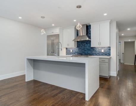 Set on Southies sought-after East Side, this newly renovated 1,651 SF penthouse duplex pairs upscale living with TWO parking spaces. Located right by K Street, this custom 3BR/2.5BA home blends modern design with premium finishes throughout. The main level showcases an open floor plan and a chefs kitchen with Thermador Pro appliances, Italian glass tile, a vented hood, gas cooking, and a quartz waterfall island. The living area features a custom-tiled fireplace with a hand-cut walnut mantel and direct access to a private deck. The front-facing primary suite offers exceptional light and privacy. The upper level includes two additional bedrooms and a full bath with access to a second private deck. Central A/C and in-unit laundry complete the home. No pets permitted. Available June 1st.