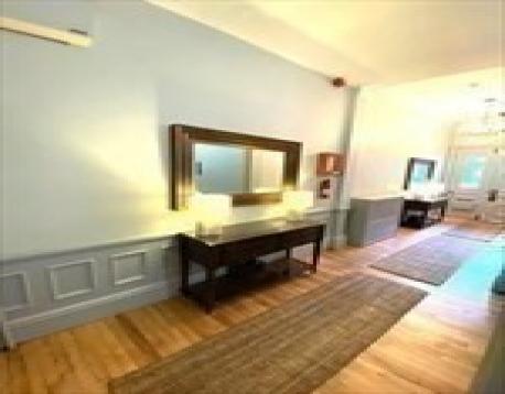 NEWLY FURNISHED 3 BEDROOM -- STEPS TO BACK BAY THROUGH THE PARK - Amazing views from super tall Columbus boulevard building. Two very large master bedrooms w/ ensuite bathroom, additional study, wide windows and large closet; currently used as home office but easy small 3rd BR. Hidden stair-to-full laundry. Tall ceilings. Very roomy. Again, additional Half bedroom is a 2-person office currently, fireplace and parking additional right next door. Posh professionally managed building is spotless, gleaming wood floors throughout, wide windows, and sun-splashed with southern exposure ALL-DAY-LONG! Fresh crisp designer window treatments included in some areas. CLEAN-CLEAN-CLEAN. Laundry in unit. Enormous living room. Additional storage.