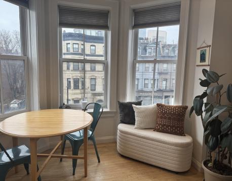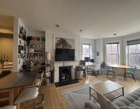 Upper level, front facing, renovated home in an A+ South End location! Steps to the T , restaurants, shopping & universities. . Features include: hardwood floors, high ceilings, great light, decorative fireplace, open floor plan, custom closets, updated kitchen & bath. Walk score has given this location a 93 "walker's paradise" and a 100 score for public transportation. June 1 move in.Sorry, no pets or undergrads.Can be available for May 15th move in.Easy to show with notice!There is no laundry in the building. South End Laundry is across the street. Other options also available .