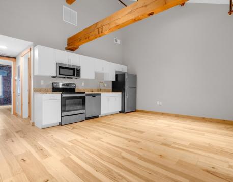 Welcome to Unit 159 at Ropewalk, a beautifully updated historic gem in the heart of the city! This unit is a very popular unit! This charming one bedroom, one-bathroom apartment offers a big open living space, blending modern amenities with the unique character of its post-and-beam historic preservation. Step inside and you'll immediately be welcomed by the open kitchen and living room, which features full-size appliances and convenient in-unit laundry. One large bedroom is located in the rear of the unit, big enough for a king bed, dresser and desk! This building is historic, highlighting the exposed beams and distinctive architectural details that set this unit apart from typical Boston apartments. Located in a building that underwent thoughtful renovations in 2019/2020, this apartment is a rare find, offering the perfect combination of old-world charm and contemporary comforts.