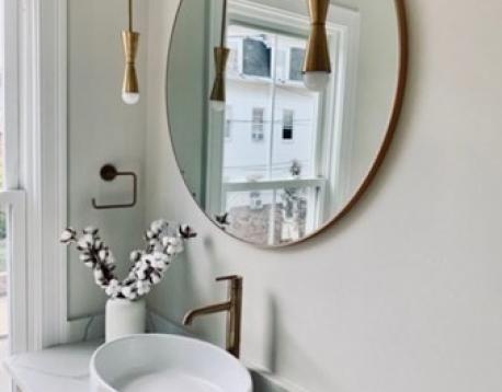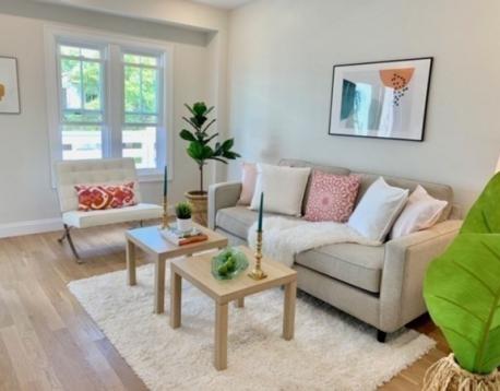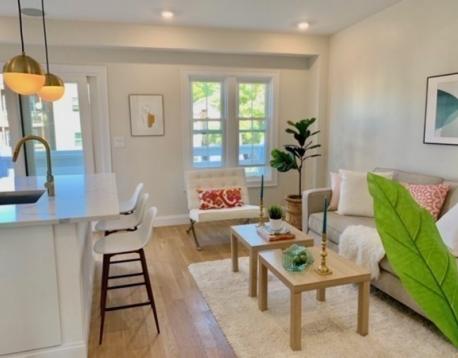 Avail. 6/1 +/- flexibility. Beautiful, sunlit apartment is well laid out with an open entertaining space, a designer kitchen, and private deck that looks out over a landscaped backyard. Wide-plank, white oak floors, European-style frameless cabinetry, mid-century style modern light fixtures, hand-crafted backsplash tiles, modern quartz countertops, top of the line appliances, and brass and gold finishes through-out add to the Lux feel. Primary suite is airy with a standout bath finished with handmade tiles and gorgeous brass lighting. Second bedroom provides flexible options for an office if need be. Private basement storage is an added bonus. Modern conveniences include smart home technology; video doorbell surveillance, nest thermostats, built-in speakers, Navien Combi heating, cooling systems, and more! Located on a quieter street in the hot Jeffries Point neighborhood, near numerous restaurants, the beautiful waterfront, and plentiful green space. You won't want to miss this!