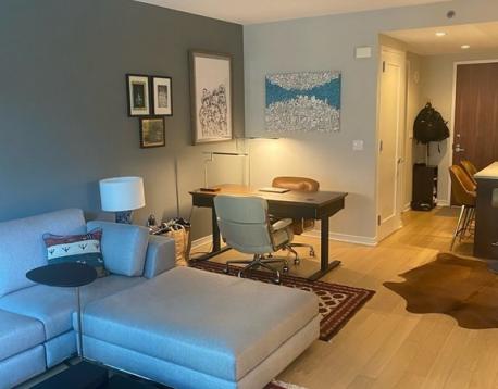 Fully furnished spacious one bedroom at Millennium Place. Spacious living room with open concept kitchen appointed with stone countertops, stainless steel appliances, and contrasting dark tone cabinetry. The main bedroom includes an en-suite marble appointed bathroom. Half bathroom off of the entry way includes a laundry closet. This condo offers 875 square feet of living space with a gas fireplace and floor to ceiling windows. Designer quality furnishings, move right in!! Millennium Place boasts 24-hour concierge, doorman, pager, 24-hour security, on-site maintenance, and on-site management. Resident dedicated amenity spaces include a fitness facility, yoga studio, therapy studio, play-room, movie theatre, common terrace, and resident lounge with weekend food and beverage service. Inquire for availability.
