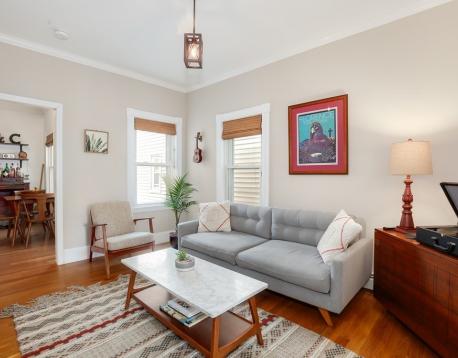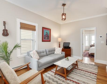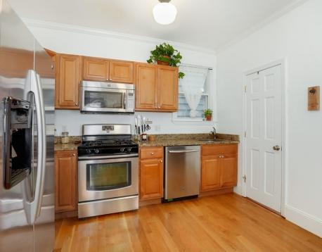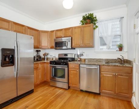 Welcome to this well-kept 2-bedroom, 1-bath condo unit for rent located in the heart of East Boston's thriving Orient Heights neighborhood. Unit 1 at 607 Bennington St offers a bright, comfortable living experience with modern finishes and exceptional convenience. Step into an open and inviting living area featuring, high ceilings, hardwood floors, ample natural light, and a layout that maximizes both comfort and functionality. The renovated dine-in kitchen includes stainless steel appliances, abundant cabinet and countertop space for cooking. Both bedrooms are generously sized, offering versatility for roommates, a home office, or extra storage. Additional highlights include dedicated laundry in basement, shared outdoor space with downtown skyline views, easy street parking and quick access to major routes. Located just moments from the Wood Island and Orient Heights MBTA Blue Line stops, Constitution Beach, tennis courts, East Boston Greenway, and fantastic neighborhood restaurants