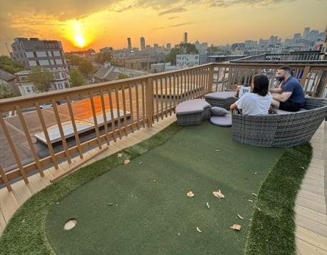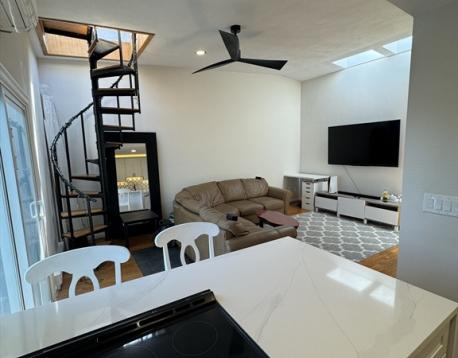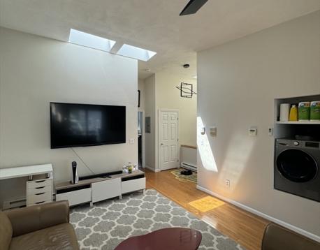 Available 1/1/26. Two Bedroom One Bath with rare private roof deck accessed by a spiral staircase in the living room! Imagine your own private roof deck with a putting green and breathtaking City skyline views. This unit was completely renovated in 2024. The kitchen is a beautiful white quartz with a garbage disposal installed. The bathroom features heated tile floors, a touch screen illuminating mirror, dual shower heads and a heated towel rack. There is also an in unit WASHER/DRYER. The unit can be provided partially furnished with a large sofa and 70 inch wall mounted TV. Steps away from the Andrew Square T Station. Parking available at the local church two blocks away. The real estate agent has ownership interest in this property.