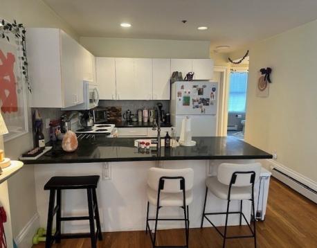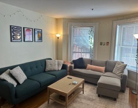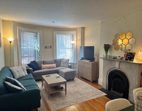 This fantastic South End apartment is located in the Eight Streets Neighborhood, one of the South End's most desirable locations. Walk out your door to some of the best dining and shopping that this amazing neighborhood has to offer. Two beds, two full baths, hardwood floors upstairs and newer carpet downstairs. Adorable upper level living room with decorative fireplace and windows looking out to Dwight Street. Renovated kitchen with great cabinet space, microwave and dishwasher. The lower level primary suite has a walk-in closet and en-suite bath with tub. Free common laundry and additional private storage. Available June 1, 2026.