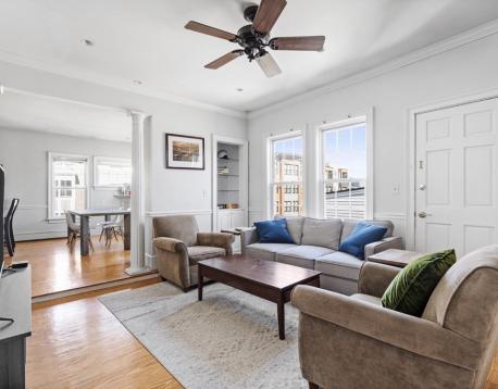 TWO-LEVEL LIVING SECONDS TO EAST BROADWAY | This is the perfect 3 bed you have been waiting for. Condo quality finishes complement a great duplex floor plan that accommodates roommates extremely well. The living room seamlessly flows to a true dining room with corner exposure and around to your well appointed kitchen with updated appliances. The first two bedrooms are on the main level and share a bathroom w/ washer dryer. The third bedroom occupies the entire upper level with skylights and a private en suite bath. Directly on the corner of L & E 3rd, you are right between Seaport and Southie, on top of bus lines, shops, coffee, grocery, The Broadway, the Playwright and more. Jaunt down L st towards the water and you are at the beach!