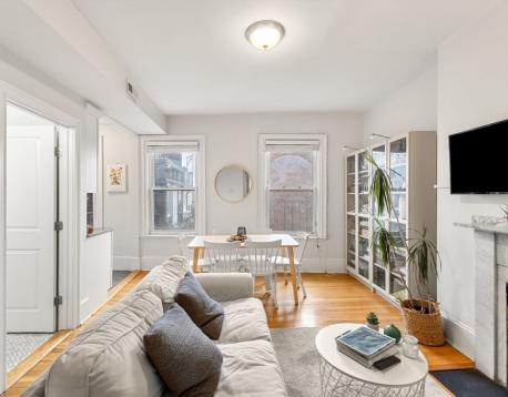 Charming fully renovated 2 bed/1 bath Beacon Hill apartment available 6/1/26. Enter into a spacious open layout living and dining area, complete with decorative fireplace and three bright windows. Enjoy a renovated kitchen with granite counters, gas cooking, and stainless appliances including a dishwasher. The large primary bedroom features two windows, a closet, and a second decorative fireplace. The second bedroom is smaller and located within the primary bedroom with one window, perfect for a guest room or office. A fully renovated bathroom with a marble shower and granite vanity is off the living area. Features include central A/C, central heat, and hardwood floors throughout. Rent includes hot water and water. Common laundry is in the basement as well as bike storage. Moments to MGH, State House, Charles River, Wholefoods, Target, and countless local eateries and bars. Convenient to the Charles/MGH Red Line MBTA, as well as several bus routes. No pets or Undergraduates, sorry.