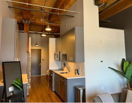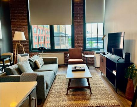 Experience the best of city living in this sun-splashed brick-and-beam residence, perfectly situated in the heart of Fort Point and steps from the Seaport. Soaring 13+ foot ceilings, exposed beams, and hardwood floors create a warm, open feel throughout. Oversized east-facing windows bathe the living area in natural light, while the custom chefs galley kitchen features abundant storage, quartz countertops, a subway tile backsplash, and a stainless-steel appliance suite.Enjoy thoughtful details like in-unit laundry and generous closet space, plus a shared roof deck perfect for soaking up the summer skyline. Just moments from the neighborhoods vibrant shops, fine dining, and the scenic Boston Harborwalk, this home offers the perfect blend of historic charm and modern urban convenience the ideal pied--terre for city living.