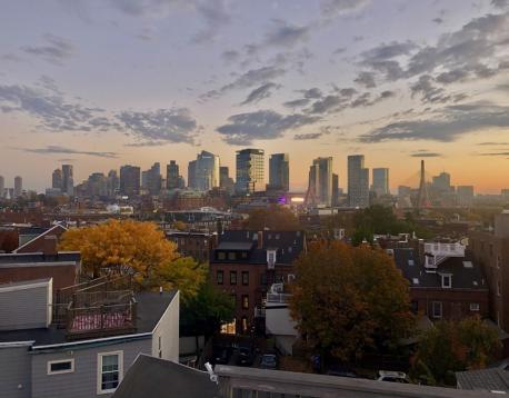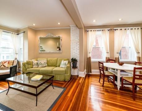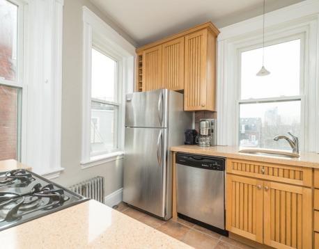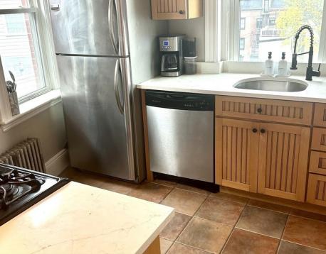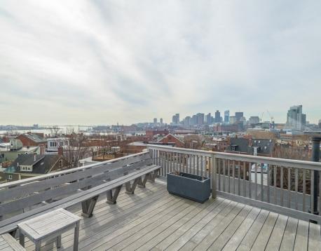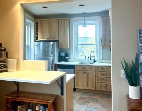 Welcome to 64 Chestnut Street, Unit 3- a bright corner unit filled with natural light, featuring tall ceilings, recessed lighting, pumpkin pine hardwood floors and exposed brick. The open-concept layout offers spacious living and dining areas that flow seamlessly into a well-appointed kitchen with granite countertops, ss steel appliances, a breakfast bar, and a large pantry. The oversized primary bedroom easily accommodates a king bed with ample room for additional furniture, while the second bedroom is ideal for a home office or guest space. A renovated subway-tiled bathroom and in-unit laundry provide modern convenience. Additional highlights include private storage and access to a stunning common roof deck with panoramic city views. Ideally located in the heart of Charlestown, just moments from the Bunker Hill Monument, shops, dining, and easy access to downtown. Tenant responsible for gas, electricity, & renters insurance. Available 6/1, possibly sooner.