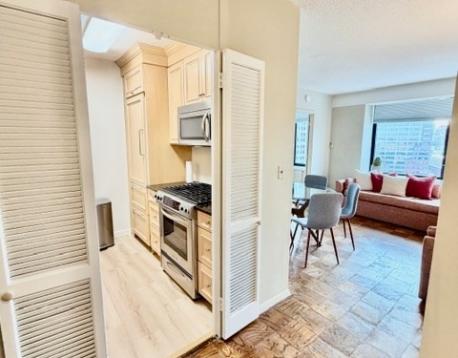 Located in Bostons waterfront neighborhood, this fully furnished 2-bedroom, 1-bath condo at Harbor Towers offers stunning skyline views and exceptional city living. The sun-filled home features a spacious living and dining area with wood floors throughout and an updated galley kitchen with stainless steel appliances, gas cooking, dishwasher, microwave, and full-size refrigerator. The primary bedroom showcases breathtaking city views and ample closet space, while the second bedroom is equally spacious with great storage and views. Central A/C, heat, and hot water are included for added comfort and convenience. Residents enjoy a seasonal heated outdoor pool, landscaped lawn with grills, full-time concierge, secure gated entry with 30-minute drop-off parking, common laundry, bike storage, and optional garage parking for $485/month. Ideally located near the Financial District, North End, Seaport, Greenway, I-93, I-90, and the MBTA Blue Line.