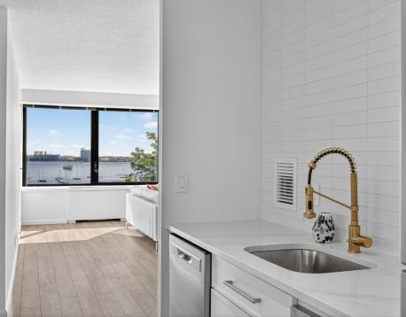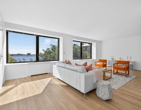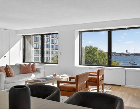 6 month FURNISHED RENTAL. Direct WATER views from this stunning, beautifully renovated 1600+ sf rarely available F unit, two bedroom, 2.5 bath home. A bright and airy, large corner living room with a wall of windows overlooking Boston Harbor, the airport and the ocean beyond. Private balcony with southern views of the pool. New designer kitchen with gas cooking, 2 new luxurioius marble full bathrooms and new powder room off the entry foyer. Hardwood through out. Both bedrooms are King sized, laundry in unit, abundance of storage, A real gem on Boston's historic Waterfront. Sit in your living room and enjoy sparkling morning sun and the reflection of evening lights over Boston Harbor. All in a luxury, full-service, concierge building offering city living at its best. Seasonal harbor side in ground heated pool and BBQ. Rental parking available. By appointment.