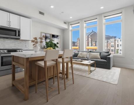 Short or long term rental available NOW in East Boston! Welcome home to 65 Meridian - this one bedroom, one bathroom in an elevator building boasts high ceilings, lots of natural light and is located in the heart of Eastie. Enjoy a chef's kitchen with stainless steal appliances and plenty of storage. Your living area allows for a multitude of uses including dining, living area and home office. A spacious bathroom features large shower and convenient, yet out of the way, access to your in unit washer/dryer. The king sized bedroom features two fully outfitted closets and access to a private deck! Lease to run through March 2026 with potential option to renew!