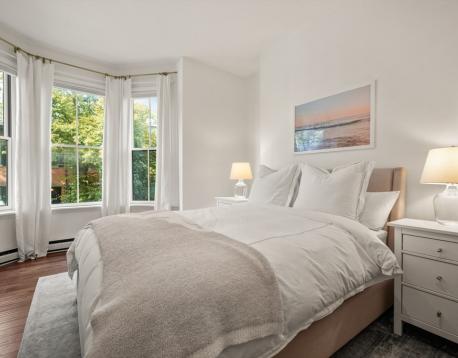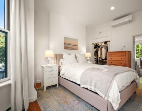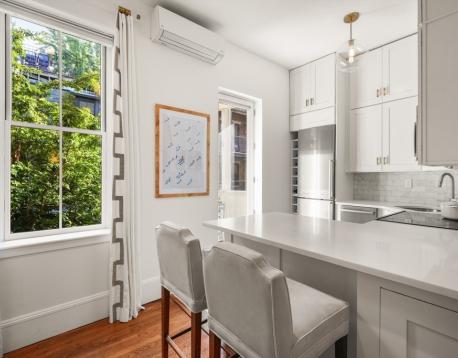 Dont miss this pristine 1-bed on coveted Appleton St. Just one flight up from the building's entryway, this bright and airy retreat offers an open-concept living and kitchen space with soaring 10-foot ceilings, crown molding, and hardwood floors throughout. The large, fully gut-renovated kitchen features stainless steel Bosch appliances, including an induction stovetop, custom cabinetry, Carrara marble backsplash, Caesarstone countertops, and a spacious breakfast bar. Just off the kitchen, enjoy your private rear deckperfect for morning coffee. The fully renovated bathroom boasts a Carrara-tiled tub/shower and a deep storage closet. The bedroom offers abundant natural light, beautiful bay windows, two large closets, and an additional storage closet. It also includes top/bottom blackout blinds and easily accommodates a king-size bed. Additional details include central AC, an in-unit washer and dryer, and a coat closet. Enjoy everything South End has to offer at your doorstep!