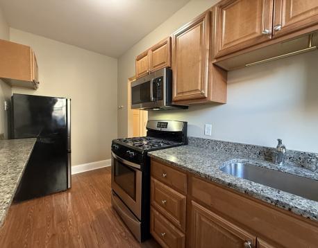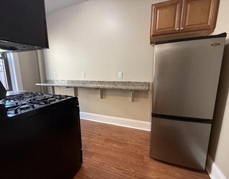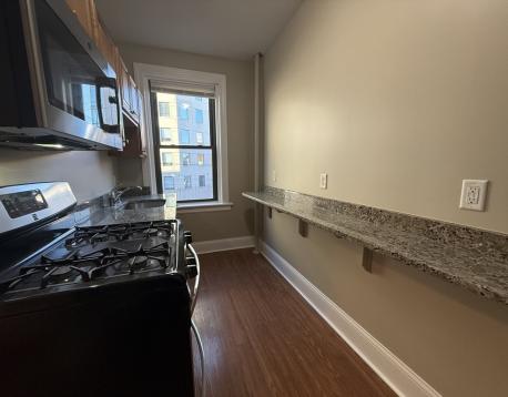 Charming, renovated studio apartment features gleaming hardwood floors, loads of natural light, and a functional layout- perfect for comfortable living. With thoughtful design elements, this studio offers a welcoming and contemporary atmosphere. The renovated kitchen is equipped with stainless appliances, rich cabinetry, granite counters (including a breakfast bar for dining or checking email), and gas stove. The bathroom with tile flooring has been tastefully updated and includes white surround tile, a large window, and a deep basin sink with vanity below. On-site laundry conveniently located in an elevator building. Incredible location across from the MBTA Green Line and in close proximity to Longwood Medical Center, hospitals, and universities. Restaurants, coffee shops, and Stop and Shop are just a short distance away. Heat and HW included. Great for the working professional. No students please. Easy to show! Available December 1, 2025 or January 1, 2026.