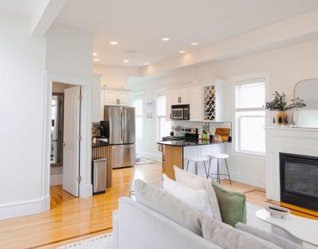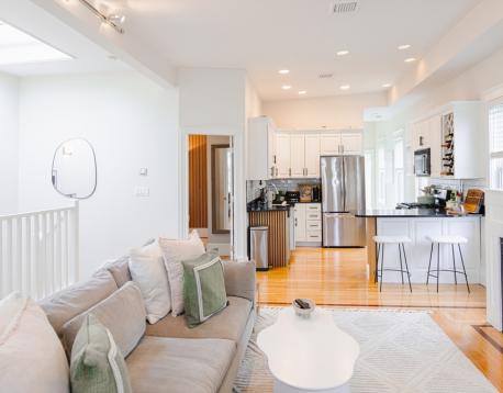 This stunning 2-bedroom, 2-bathroom rental offers almost 1,200 sun-drenched square feet on one level in South Bostons desirable East Side. The home features a spacious open living and dining area with over 10-foot ceilings, a skylight, and ample room for a full dining table and sofa. Meticulously maintained with modern amenities include a gas fireplace, central air, hardwood floors, and additional basement storage. The primary suite, located at the rear of the home, boasts a twin vanity master bath. Enjoy two private outdoor spaces, including a sprawling 250 sqft newly built rooftop deck with breathtaking ocean and city views. Ideally situated just blocks from Broadways shops and restaurants and Day Boulevards beaches, walking, and biking trails, this home is perfect for entertaining or relaxing. Street parking is available with a permit, and there is an additional $100/month pet fee for tenants with pets. Available fully or partially furnished, this is not one to miss!