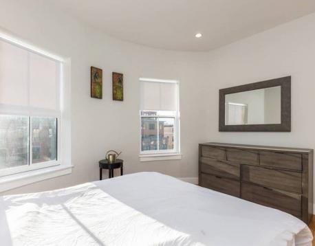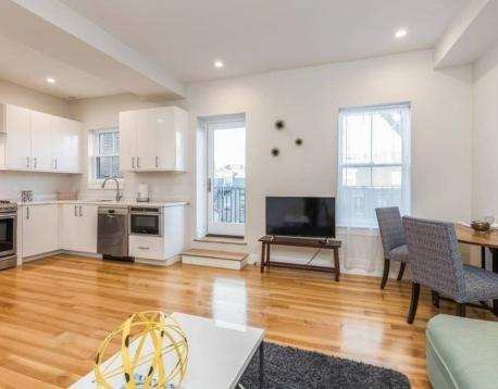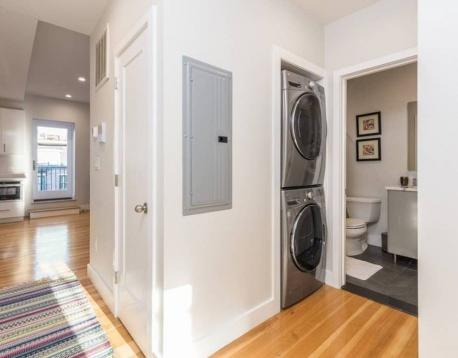 Available for move in 6/1/26. This 2 bed 1 bath unit offers high ceilings, has beautiful European style flat panel cabinets, high capacity in-unit laundry, high efficiency air conditioning and on-demand hot water systems, and excellent storage. The unit has white marble countertops, cabinets with white high gloss, underneath LED lighting, high energy efficiency windows, recessed LED lighting, beautiful beech hardwood flooring, bathrooms feature grey tile, rain head and power spray showers, frameless glass enclosures, vanities light grey, high gloss cabinets, Bosch appliances and a wine cooler! Take advantage of the wicked nice deck in the back. Move in dates/lease length negotiable. See attached matterport/virtual tour.