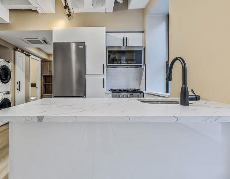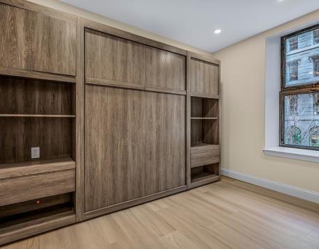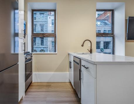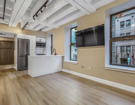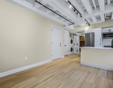 Discover the epitome of contemporary living at Flats on Broad, where our renovated 1 Bedroom apartments redefine urban elegance. This thoughtfully designed unit features custom built-ins, custom murphy bed, in-unit washer/ dryer, and TVs, seamlessly integrating style and functionality. The kitchen boasts quartz countertops and brand new stainless steel appliances. Nestled in the vibrant Financial District, this residence offers unparalleled convenience: enjoy a leisurely stroll to work, effortlessly access public transportation, and explore upscale dining and trendy boutiques in the vicinity. Experience urban living at its finest in this sophisticated 1 bedroom, where every detail reflects modern design.