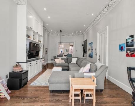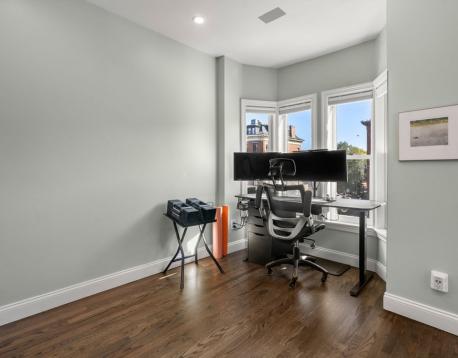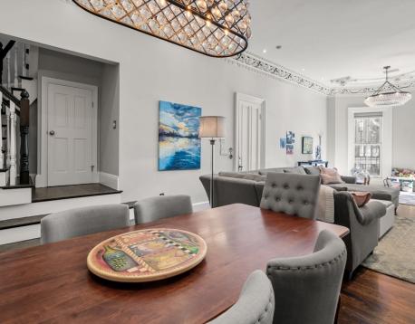 Beautifully updated two-story luxury condo for rent in the heart of Bostons South End. This stylish and spacious 2-bedroom, 2.5-bath home features an updated kitchen with custom built-ins, in-unit laundry, AC, and two private outdoor deck spaces. Natural light pours in through the impressive 12' ceilings on the main level with original details such as crown molding and an antique glass pocket door. King-sized primary ensuite with radiant heated bathroom floors, custom built-ins and access to deck. Plus a generously sized second ensuite bedroom. One direct-access parking space included. Enjoy a functional layout with "Smart House" features, perfect for both everyday living and entertaining. Ideally located within walking distance to the Prudential Center, Back Bay and Mass Ave T stops, and many of the South Ends favorite restaurants, shops and cafes. Experience the best of city living from this stylish and well-appointed home on Tremont Street. Available 11/1. Pets negotiable.