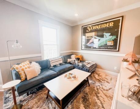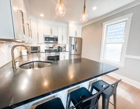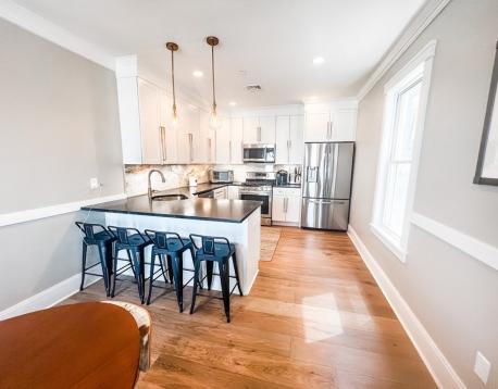 Stunning Eagle Hill 2 bedroom, 2 bathroom fully renovated penthouse unit. Gorgeous and functional kitchen with expansive black quartz counters, counter seating for 4, tons of storage and gas cooking. Open plan living with plenty of room for full living and dining areas. Large master primary suite with spacious custom walk-in closet accommodates a king bed and furnishings . En suite bathroom with a large walk-in shower oversized vanity with tons of storage plus a linen closet. Generous second bedroom. Work from home is a delight with an office nook large enough for a desk and Peloton. There is also a full sized laundry room! Large rear private covered deck, central A/C & additional storage. All in walking distance to neighborhood parks, restaurants, shopping and T. Garage parking may be available off site for an additional fee. Available April 1 (March 15 may be possible, please inquire). Please email or text all showing requests. Photos from previous listing