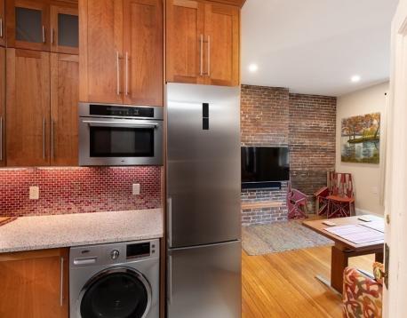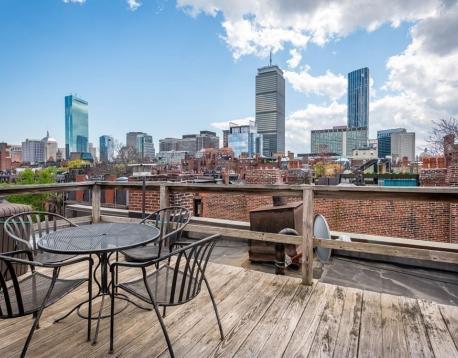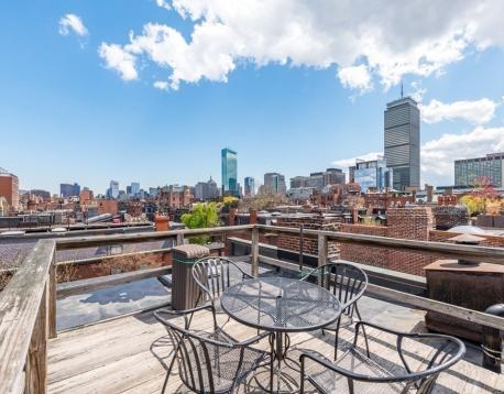This sun-filled top-floor apartment unit offers a stylish and ultra-convenient city lifestyle. Located in the heart of Backbay and steps from Charles River, the apartment is perfect for those who commute in and out of the Longwood Medical Area, MIT, BU, Harvard, MGH, and Financial District of Downtown BostonNewbury Street and everything else you need is just minutes away. Features include custom cabinetry, stainless steel appliances (full fridge, dishwasher, range, in-unit laundry), and a sleek modern bath with glass shower, plus in-unit laundry (All-in-One Front Loading Washer and Dryer Combo unit under the kitchen counter). Large windows bring in tons of natural light, while exposed brick adds classic Boston charm. Enjoy access to a shared roof deck with amazing views of the Back Bay skyline and the Charles River!