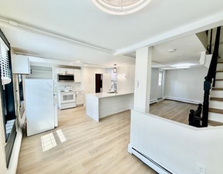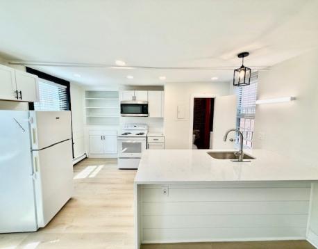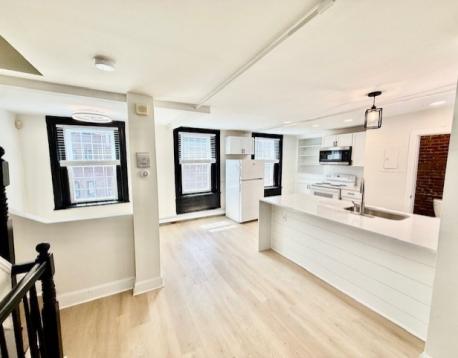 Available June 1. Newly renovated 2-bedroom, 1.5-bath duplex in Bostons North End featuring hardwood floors throughout and a bright open living room. The modern kitchen includes granite waterfall countertops, stainless steel appliances, an electric cooking stove, dishwasher, microwave, and a full-size refrigerator, along with a cozy dining nook. This unique duplex also offers a private deck, two queen-sized bedrooms, and one and a half bathrooms, with the full bath located as an ensuite. Enjoy abundant natural light throughout the space. Please note there is no laundry on-site and no pets are allowed.