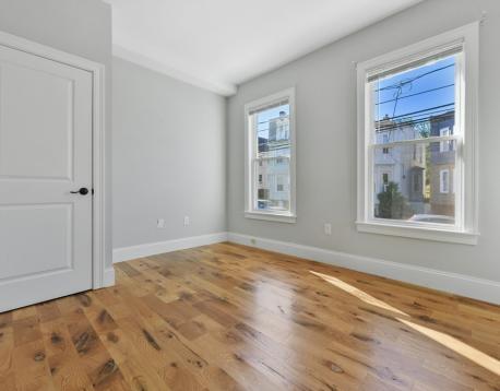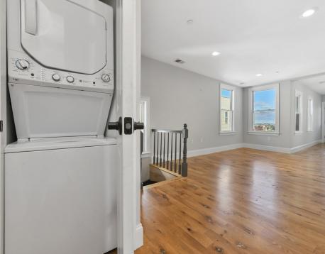 Modern quality three bed and two FULL bathrooms with hardwood floors throughout. Large deck with shared backyard. Bedrooms have large closets. Open kitchen and living room layout with lots of light! The kitchen features modern cabinetry and stainless steel appliances. Washer/Dryer located inside the unit as well as central air -conditioning, forced hot air and hardwood floors throughout. Street parking available. Easy access to public transit.