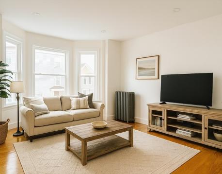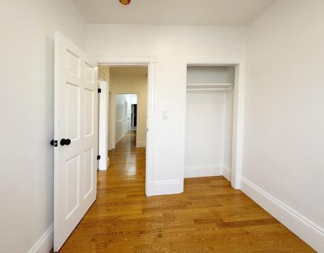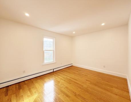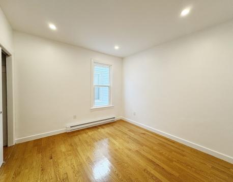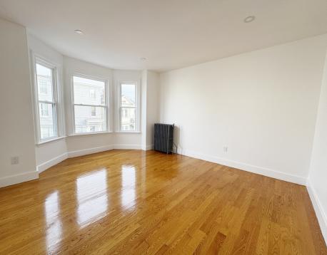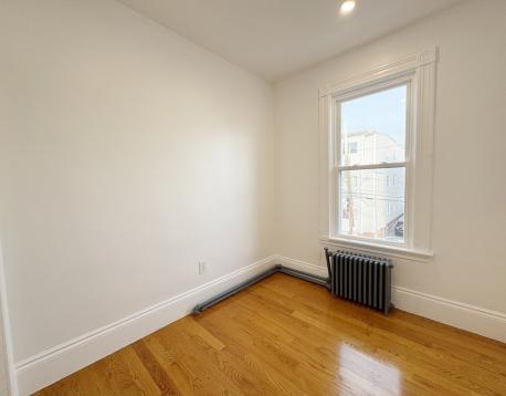 Now is your chance to upgrade to a refreshed + expansive duplex-style top-floor unit w/ private entry + stairwell leading to 4+ bedrooms, 1 bath, laundry, and a shared yard. The bow-front living room and adjacent bedroom/ office with a closet offer Chelsea Creek views. The main bedroom offers double closets and easily fits a K/Q bed and furniture. Two additional bedrooms are equal in size, each with a window, closet, and space for a queen bed. The refreshed bathroom complements the updated eat-in kitchen featuring brand-new stainless-steel gas stove and fridge, granite counters, and a dining area. Enjoy the enclosed, heated rear porch with new vinyl flooring overlooking the yard. Unit is freshly painted w/ gleaming hardwood floors, high ceilings, and abundant natural light. Free laundry in basement. Conveniently located near bus routes, Condor Urban Wild, and American Legion Fields. First months rent, one month security deposit and 700+ credit required. Pets considered with strong apps