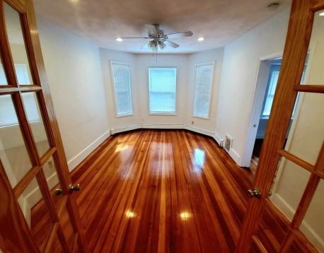 Available March 1st! Sunny and Spacious 3 Bed / 1 Bath apartment in the Orient Heights neighborhood of East Boston. This second floor, 1200+ sqft unit features hardwood floors throughout, private laundry in unit, a large eat-in kitchen with sunroom, separate living room, large primary bedroom with walk in closet and private porch, two additional equal sized bedrooms, tiled bathroom. Location is across the street from Constitution Beach, 0.4 Mile, (6-8 min) short walk to Orient Heights T (4th blue line stop), restaurants, convenient stores, highway access to 1A, North Shore and Winthrop close by. Cats ok, no dogs.