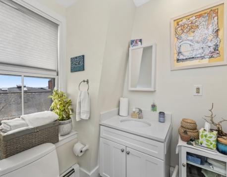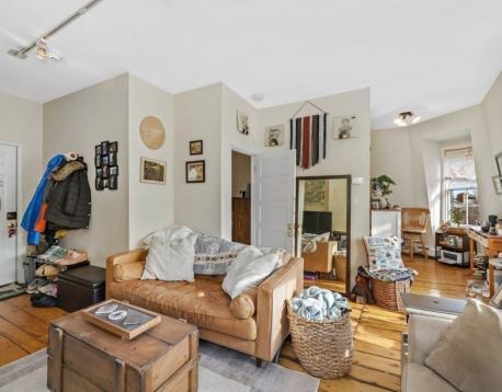 One-bedroom penthouse in the Gas Light District of Charlestown. This floor-through has original wide-pine floor and moldings as well as an updated kitchen and a modern bathroom. En-suite laundry, views, and tons of sun! The bedroom can accommodate a queen-sized bed and has good closet space. Enjoy views of the city from this unique perch and a great location on Main Street near the shops and restaurants of Charlestown. Located on the MBTA bus line, close to the Orange Line and Green Line, as well as 93, this is a great option for commuters. Pets considered no smoking. Avail now. First, sec, last.