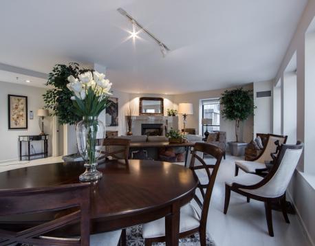 Beautifully laid out 2 bedroom 2 bathroom corner home in a luxury boutique concierge building. Sunny south facing home, spectacular open floor plan for entertaining, gas fireplace and private balcony. Enjoy a common roof deck equipped with kitchenette, bathroom and a gas grill for summer entertaining. Superb location across from the Mandarin Hotel, in the heart of back bay surrounded by supermarkets, restaurants, Eataly, cafes, shops, parking garages and public transportation.