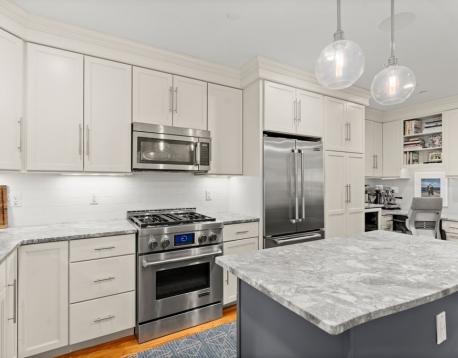 Available March 1 this beautiful three-bedroom, three-bath home offers a private patio and exceptional living space throughout. The main level features a spacious, sun-filled open-concept living, dining, and kitchen area with hardwood floors, custom built-in bookcases, and a gas fireplace. The chefs kitchen is thoughtfully designed with stainless steel appliances, a wine fridge, custom cabinetry, granite countertops, and a built-in desk ideal for working from home. A generously sized bedroom with ample closet space and a full bath completes this level. Upstairs, the primary suite boasts double closets and a sleek en-suite bath with a frameless glass walk-in shower. The lower level offers a third bedroom, full bath, and dedicated laundry room. Additional highlights include a large private patio, central air conditioning, abundant storage, and a prime location close to public transportation and all that Charlestown has to offer. This is a must-see rental.