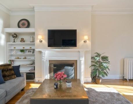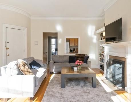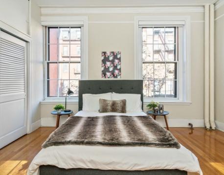 Located on the sunny side of Marlborough Streets prestigious second block, this expansive two-bedroom residence occupies the entire second floor of a classic Back Bay brownstone. Full of natural light, the gracious living room features a stunning south-facing bay window and hardwood floors throughout. The two bedrooms are conveniently situated on opposite ends of the home. The primary bedroom is oversized with ample closet space. Additional highlights include in-unit laundry, a spacious bathroom, and access to a shared front patio. Heat is included in the rent. Pets considered with owner approval and restrictions. No Undergrads. Available for March 1st move-in.