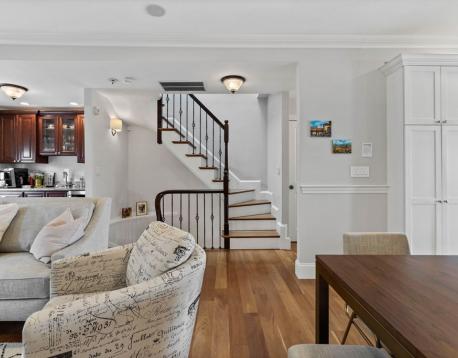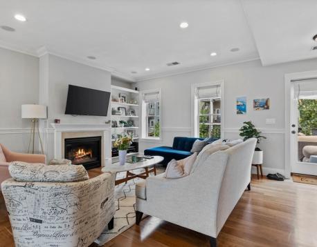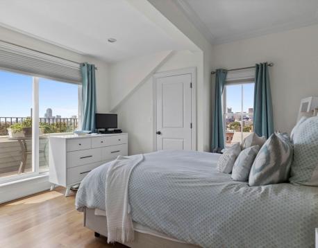 No Broker Fee Stunning South Boston Penthouse Duplex?Welcome to 8 Gates Street, a spacious 2-bedroom, 2-bathroom penthouse duplex ideally located near Broadway and Telegraph Hill. This sun-drenched home features a private entrance, soaring ceilings, and gleaming hardwood floors throughout.The open-concept living area includes a gourmet kitchen with granite countertops, a center island, and stainless steel appliances, flowing seamlessly into a cozy living space with a gas fireplace. A stylish wet bar with wine fridge leads to a private deckperfect for entertaining.The primary suite boasts sweeping views of Boston and its own private balcony, while the second bedroom also enjoys outdoor access. Both bathrooms are tastefully updated, and the unit includes in-home laundry and central air.Enjoy easy street parking and quick access to public transit, plus walkability to South Bostons best restaurants, shops, and green spaces. Historic charm meets modern comfort.