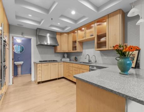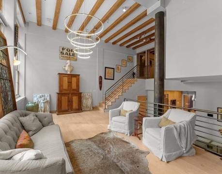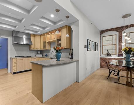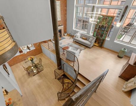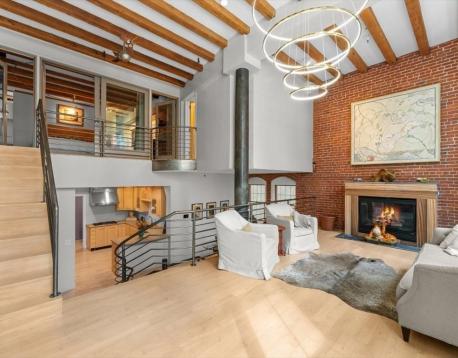 30 DAY TENANCY AT WILL LEASE-- Located in one of the South Ends most storied buildings, this extraordinary four-level loft-style home offers rare scale, history, and custom craftsmanship. Once the 1904 showroom for PP Caproni & Bro., this 2-Bed/2.5 Bath provides exceptional privacy and architectural significance. The dramatic main level features a soaring 14' living room with gas fireplace, exposed old-growth chestnut beams and expansive entertaining space. A top-tier kitchen with Sub-Zero and Bosch anchors the entry level, along with a flexible dining/office area/Potential 3rd Bedroom and ~200 sq. ft. of easily accessed storage under living room. The full top floor is a serene primary suite with two walk-in closets and a spa-inspired limestone bath. The lower level includes a private guest bedroom with en-suite onyx bath and separate entrance. One full-size gated parking space included. Common roof deck plus shared bike storage. A truly unique home with the scale of a single-family
