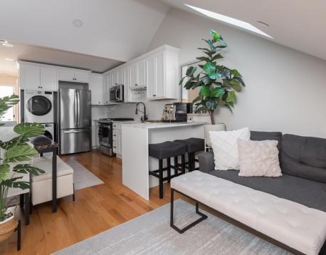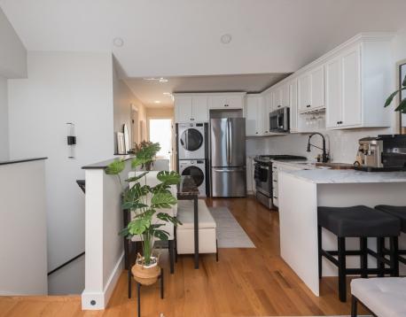 Available 4/1! Experience elevated penthouse living in the heart of Charlestown, just steps to the Monument and a short stroll to neighborhood restaurants, shops, bus lines, and public transportation. This stunning new construction 2 bed, 2 bath home features a massive private back deckperfect for entertaining or unwinding outdoors. The open-concept layout offers a spacious, front-facing living room with oversized windows, exposed brick, and a decorative fireplace, creating warmth and character. The luxury kitchen is designed to impress with stainless steel appliances, marble countertops, custom cabinetry, and a breakfast bar overlooking the living space. Both bedrooms are privately positioned in the rear with generous closets. Additional highlights include central air, in-unit washer/dryer, recessed lighting, marble-tiled baths, and abundant storage. A perfect blend of modern luxury and classic charm near Monument Square!