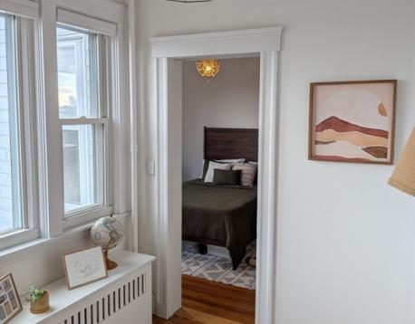 AMAZING 2BED PLUS OFFICE AND 1BATH CONDO** The property is situated high on the hill in popular Orient Heights. High ceilings and hardwood floors throughout, you will love this thoughtfully updated condo that still maintains it's charm. Kitchen has newer white cabinets, Acacia Wood counter tops and exposed, original wood flooring, a pantry off the kitchen holds the In Unit Laundry. Bathroom has been remodeled and features a vintage claw foot tub. The living room has a marble, decorative fireplace and bay windows allowing for great natural light. Large picture window and fantastic views has a closet and would make a great office. There is a private patio deeded to this unit and an amazing 2 tier shared yard. Each unit has their own designated garden plot! Street parking only! Moments from the Blue Line, Orient Heights Station.