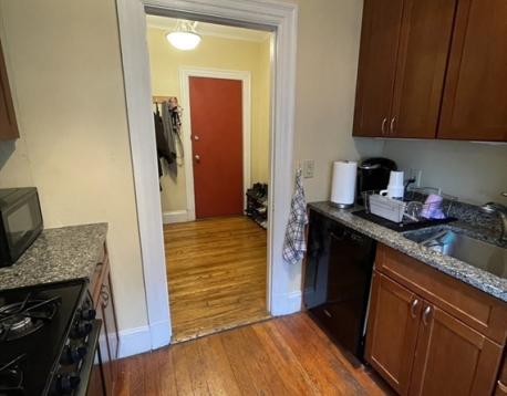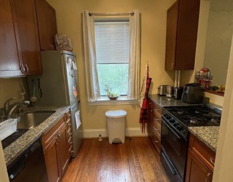 Well located on a residential street close to restaurants, cafes, supermarket, and all the shopping you could possibly do. Close to Longwood Medical Center. Professionally managed and well maintained building with common outdoor space/garden. Front corner apartment with stainless and granite kitchen with window, and pass-thru to living room, hardwoods throughout, Separate entry area perfect for home office. Sorry, no students or smoking.