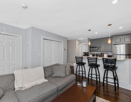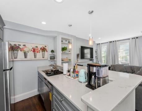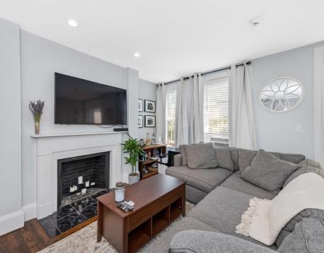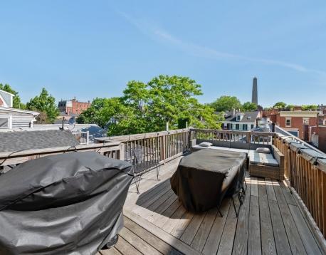 Avail 9/1. Sunny 3BD/1.5BA duplex in the Gas Light District of Charlestown with private roof deck and ultra-modern kitchen. The first floor of this updated apartment features an open layout. The kitchen, with granite counters, stainless steel appliances and oversized breakfast bar, opens to the balanced living room with decorative fireplace - a space large enough for a sectional plus additional furnishings. The private roof deck is located directly off this space. One large bedroom (can fit king bed) and an updated 1/2 bath complete the first floor. Second floor features two additional bedrooms, both generous in size and both with good storage, plus the modern full bathroom with glass-enclosed shower. Enjoy an excellent location near to the shops and restaurants of Charlestown, the orange line, Blue Bike station and downtown. Other features: hardwood floor, ample sunlight, private-ensuite laundry.