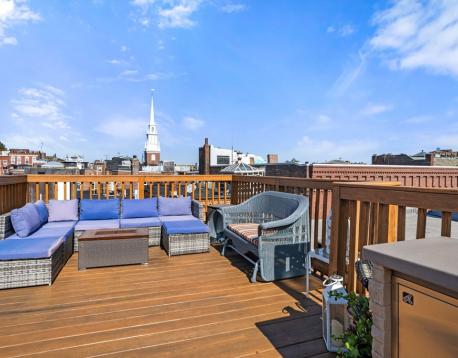Gorgeous, FURNISHED 2 bed/1 bath for rent in the heart of the North End! This sunny top floor unit offers an efficient open layout with gleaming hardwood floors throughout, and ample closet space. The high ceiling height makes this professionally managed condo feel larger than the square footage indicates. Completing this amazing home is a PRIVATE roof deck with skyline views and patio great for entertaining. Washer/dryer located IN UNIT. Close proximity to Boston's Financial District, Faneuil Hall, the waterfront, Rose Kennedy Greenway, the Freedom Trail and all MBTA lines! SHORT TERM LEASE 6 MONTHS