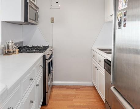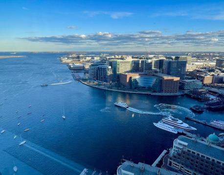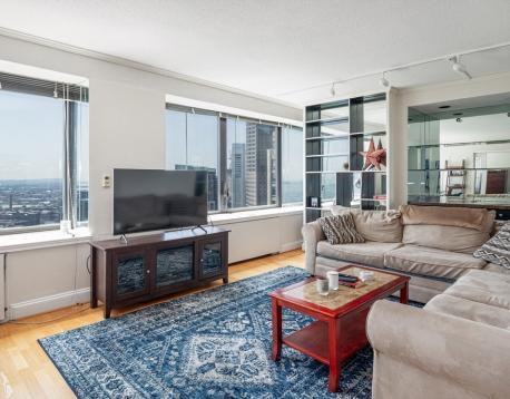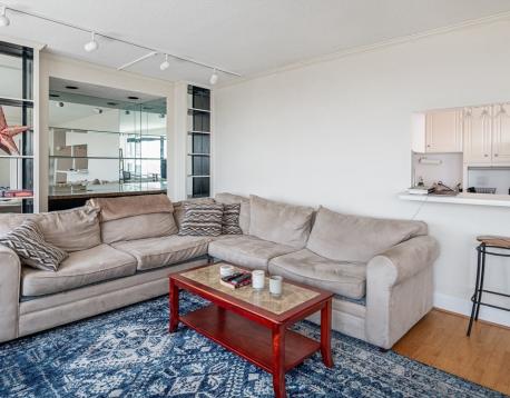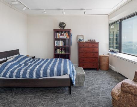 Enjoy the absolute best harbor views from this renovated one bedroom home located on the 40th floor of Harbor Towers. Formal entry foyer with built-in desk and huge walk-in closet. Spacious living/dining room with hardwood floors, custom built-in cabinets & shelving, oversized windows, lots of sun and amazing water views!!! Beautifully renovated open kitchen with stainless steel appliances, breakfast bar, hardwood floors and gas cooking. The sun-filled bedroom has glass "pocket" sliding doors open to the living room, double windows and water views. Beautifully renovated full bath. Harbor Towers amenities include 24 concierge, outdoor pool, common yard, security and rental parking. Includes heat, hot water, ac & gas cooking.